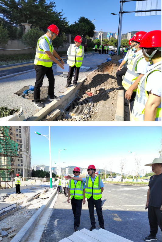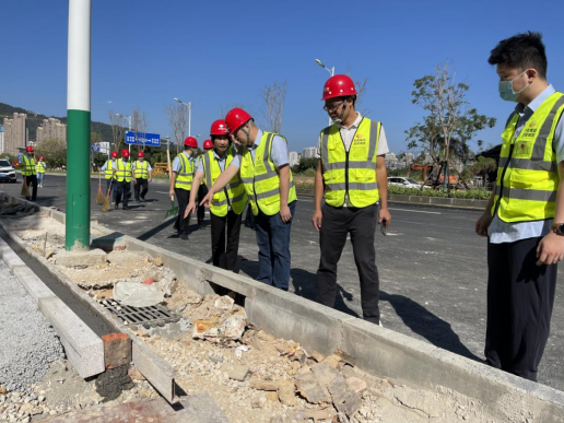 在檢查現(xiàn)場,檢查組一行認真查看道路施工安全隱患,并要求施工單位立即整改,同時,市政集團黨支部書記、董事長徐旺興還強調,一要嚴把質量關,強化質量監(jiān)督,抓質量的同時還要重安全,堅持“標準化、規(guī)范化、程序化”作業(yè),施工過程嚴格按照操作規(guī)程施工,嚴禁違章施工,確保安全生產;二要排除安全隱患,對檢查中發(fā)現(xiàn)的安全問題要及時與項目負責人對接溝通,并正式通車前逐項整改,不留死角;三要強化全局意識,完善工作機制,施工和監(jiān)理單位要緊密協(xié)調配合,提高工作效率,嚴控時間節(jié)點,全力以赴打好項目攻堅戰(zhàn),確保如期通車,為廣大群眾提供“優(yōu)質、安全、舒適”的通行環(huán)境。